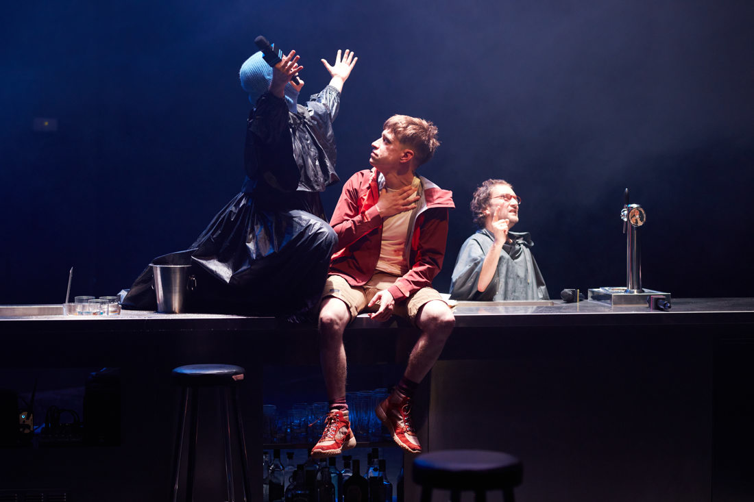 En la nostra obra, tres personatges agònics i mig alcoholitzats, que pateixen també algun dolor a l’ànima, es troben en un bar. Un espai que, com el convent, reuneix gent que, d’al- guna manera, necessita fugir o “baixar” de la quotidianitat. Ànimes assedegades, fidels al lloc que habiten, que poden tenir visions, si no místiques, almenys distorsionades.